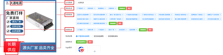 创意描述1/2:根据产品实际属性,填写创意文案,吸引买家点击。